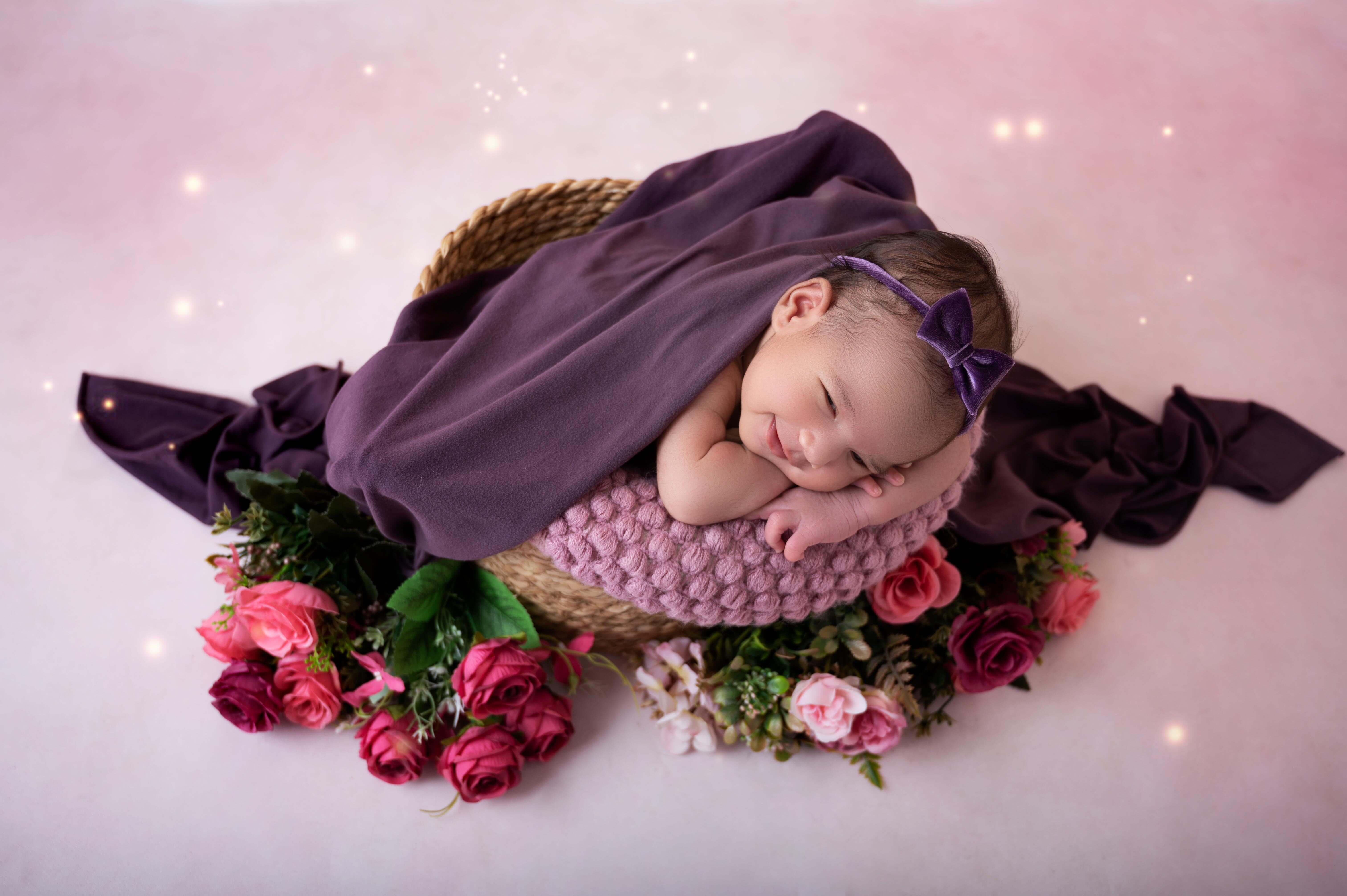 In order to capture your newborn in adorable curly poses, you should take newborn photos five to twelve days after giving birth. If you want your baby's sleepy and curly newborn demeanor to be photographed, try not to wait any longer than two weeks for the newborn session.